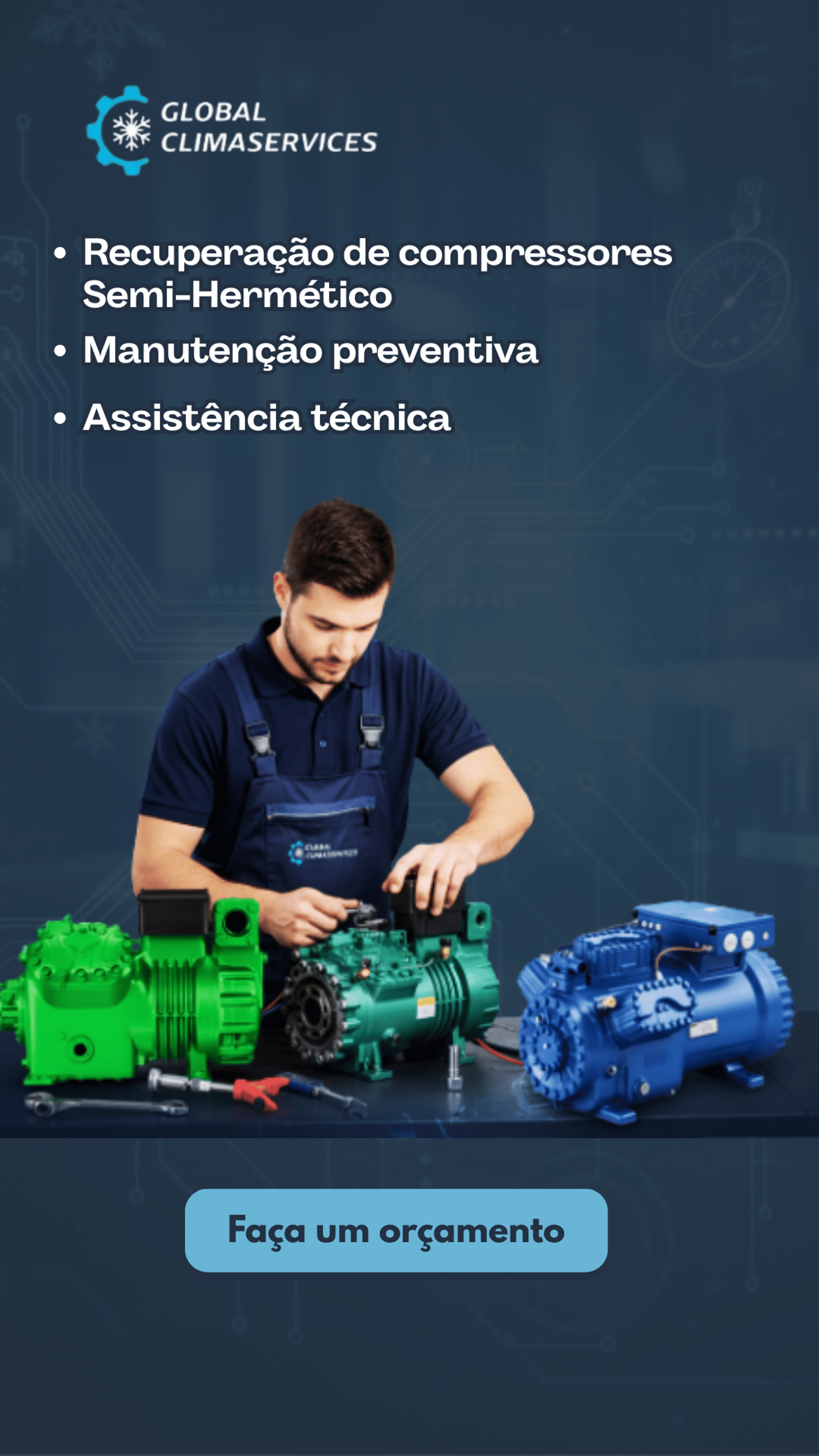 Essa combinação única de engenharia, experiência prática e gestão de alta qualidade nos permite oferecer soluções robustas e inteligentes. A Global Clima Services é a sua parceira para garantir confiabilidade, eficiência e longevidade aos seus sistemas.